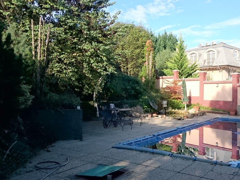 American kitchen, large living room , separate dining room , marble and granite composition with fireplace , heated pool, sauna , garage, custom-built rock gardens, small forest pond