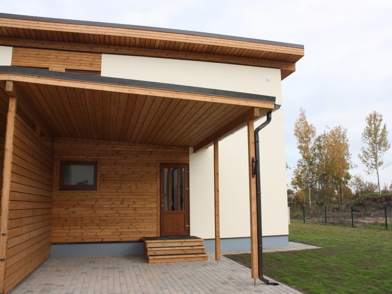 High quality semi-detached house with a wooden frame. High-quality exterior and interior finishing, good sanitary engeneering, painted walls, high-quality laminate floors.