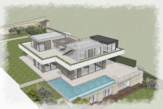 На превосходном ровном участке земли площадью 3 000 м2 создан проект и начато строительство виллы. Изумительный участок, с шикарным, панорамным видом на море. 100 % ипотечный кредит 2-2,5 % годовых