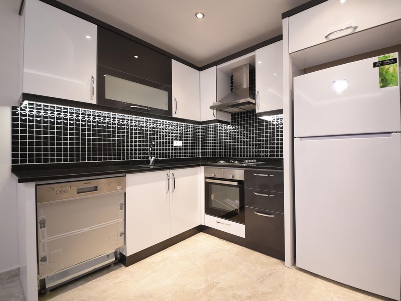 В каждой квартире этого дома качественная отделка, встроенные кухонные шкафы, гранитная столешница, в каждой комнате установлен кондиционер, на полу керамическая плитка высшего класса, окна с двойным остеклением, полностью оборудованная ванная комната с душевой кабиной и проточным нагревателем воды.