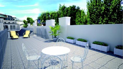 For sale penthouse with large roof terrace overlooking the park in Vienna, the federal capital of Austria and also one of the nine federal provinces of Austria, located inside the other land, Lower Austria. Living area 102 square meters. Penthouse is located in a building with a beautiful view of the park and has a large terrace on the roof almost the entire apartment. It has its own garage with private entrance and access to the elevator in the hallway leading to the apartment. Entrance hall with separate guest toilet and a storage room opens directly onto the living room with an attached kitchen to the right - entrance hall leads directly to the bedroom, the bathroom, and at the end of the corridor the second bedroom with en suite bathroom and a large terrace. Sliding glass doors from the living room open onto a small balcony, which offers a beautiful view of the adjacent park.