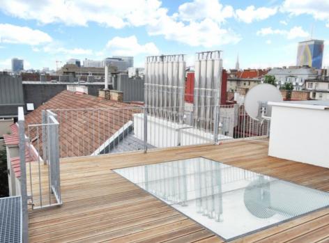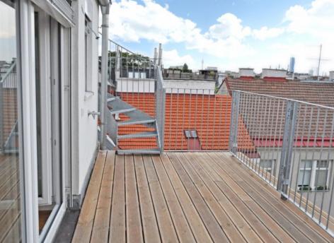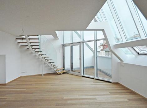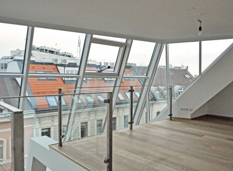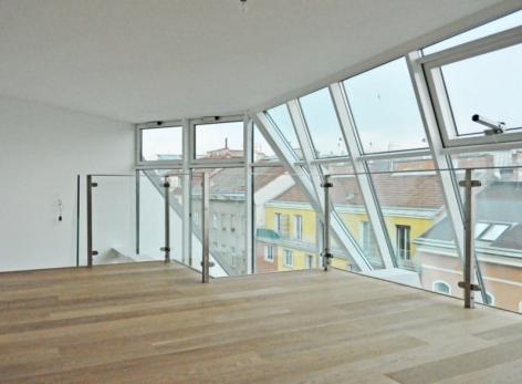 For sale exclusive penthouse overlooking Vienna, the federal capital of Austria and also one of the nine federal provinces of Austria, located inside the other land, Lower Austria. Living area 221 square meters. This beautiful "house" Penthouse: On the ground floor of an elevator with access to both levels, the latter leads directly to the kitchen-dining room. Access to the apartment through a very large room on the first floor, where there is a very bright and quiet room, equipped pantry and sliding glass doors opening onto the terrace. Just a very large bedroom with bathroom and closet, as well as a toilet. Cantilever staircase to the gallery at the second level, which can also be achieved via a lift. The spacious kitchen offers plenty of space for a dining table, and there is room for storage. A glass door leads to another dining terrace, guest toilet and a third bedroom. From the terrace of the apartment on the roof of a 360-degree panoramic view opens to a magnificent Vienna.