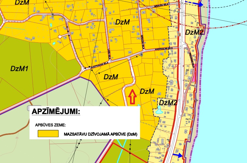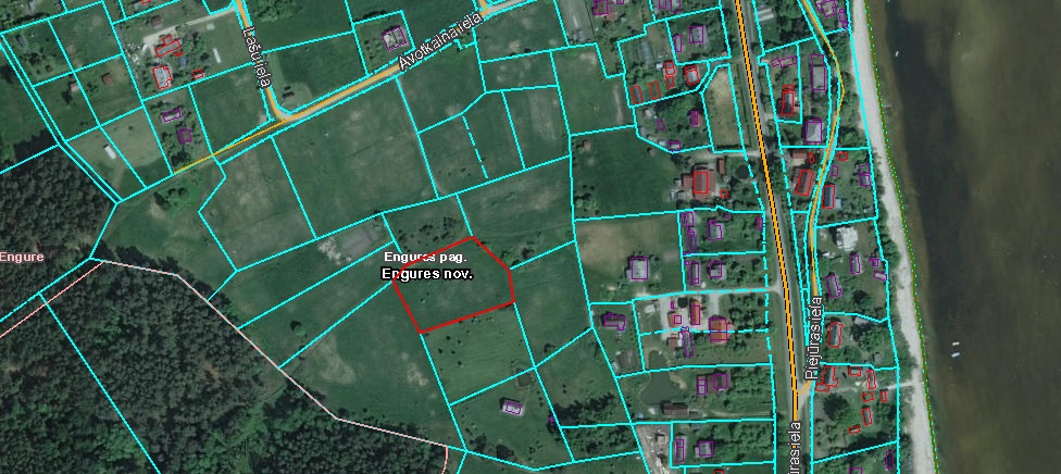Недвижимость находится  в Энгуре. Часть земельного участка (у северных и западных границ) предназначена  для дороги/постройки улицы и на  фиксированном  расстоянии от границы, установлена красная линия. Эта территория, которая  предназначена для улицы и которую нельзя застраивать. Застройку можно начинать в 6 метрах во внутрь от линии застройки. На других границах застройку можно начинать в  4 метрах  от линии застройки. Для подъезда есть дорога (указанная на плане). Трансформатор для подключения  электричества находится близко. Стоимость подключения составляет 2500 евро.