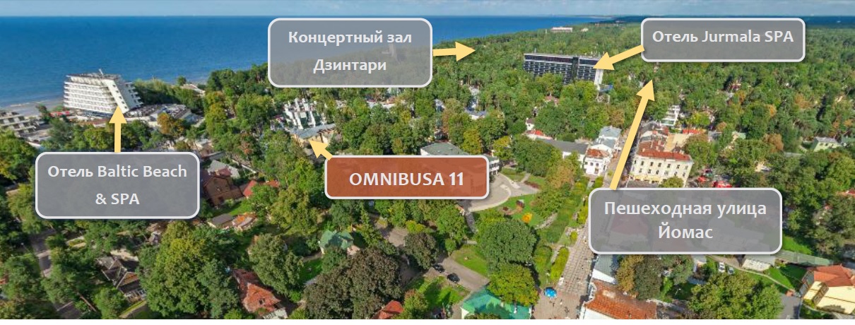 Близость известнейших отелей Baltic Beach http://www.balticbeach.lv/ru/, Jūrmala SPA http://www.hoteljurmala.com/ruи бутикового TB Palace http://www.tbpalace.com/rus/about/ с широким набором услуг высшего качества, доступных круглый год (фитнесс, спа, рестораны)