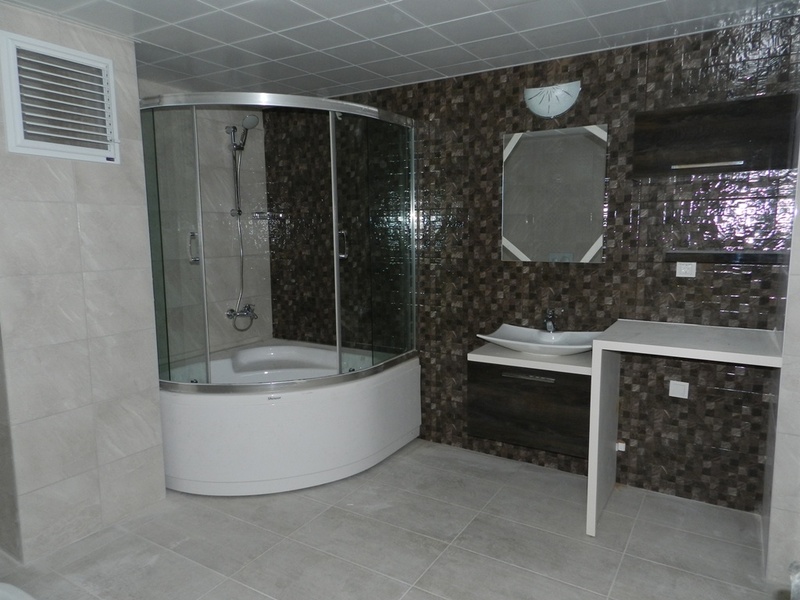 В квартире установлена система отопления ( радиаторы и газовый котёл), на всех окнах и балконных дверях установлены наружные жалюзи с электроприводом, в прихожей каждой квартиры установлен шкаф, в ванной алюминиевый потолок и точечная подсветка, шкаф и душевая кабина, на кухне совмещенной с гостиной встроенные кухонные шкафы современного дизайна, а так же установлены духовой шкаф, варочная плита и вытяжка марки "Bosch " или "Siemen", в гостиной и прихожей подвесной потолок с подсветкой "LED ".