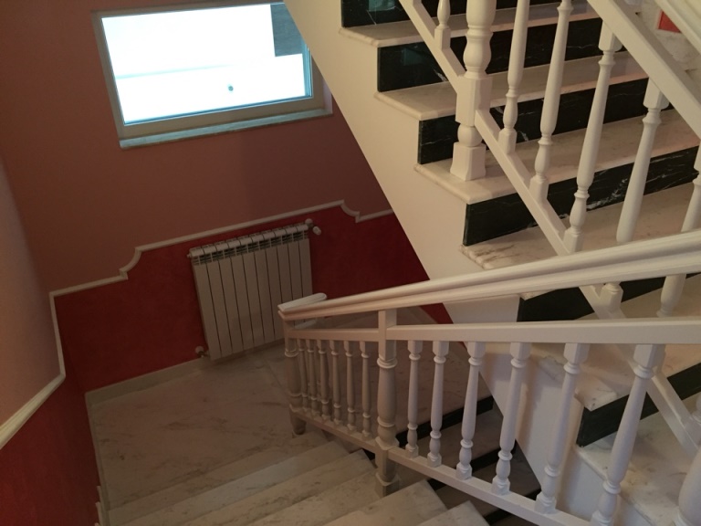 Второй этаж – холл , одна спальня , кухня , санитарный узел , коридор . гардеробная комната. Полы в основной массе с мраморным покрытием , в каждом помещении вмонтировано отопление полов.