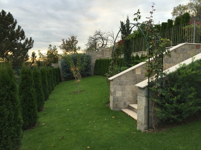 Имеется вмонтированная чистящая система . Бассейн расположен в саду  имеет функцию джакузи. Рядом с бассейном располагается санузел.