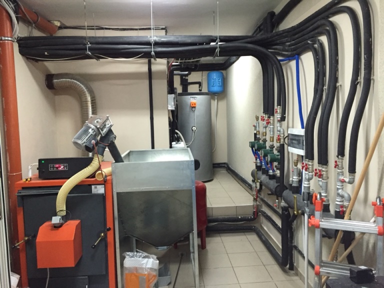 Первый этаж – помещение для отопительного котла , который работает на гранулах   , система отопления полов для дома , три гаража , фитнес зал с тёплым полом ,   сауна с тёплыми полами , складское помещение.