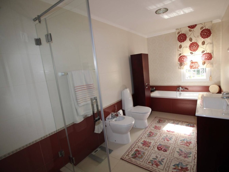 On the ground floor is a large bedroom with a bathroom. In every room of the house there are fitted wardrobes. The house is surrounded on all sides by a large garden with tropical trees, a swimming pool and barbecue area. There is also covered parking for two cars. The house is attractive for a permanent residence and in terms of investment.