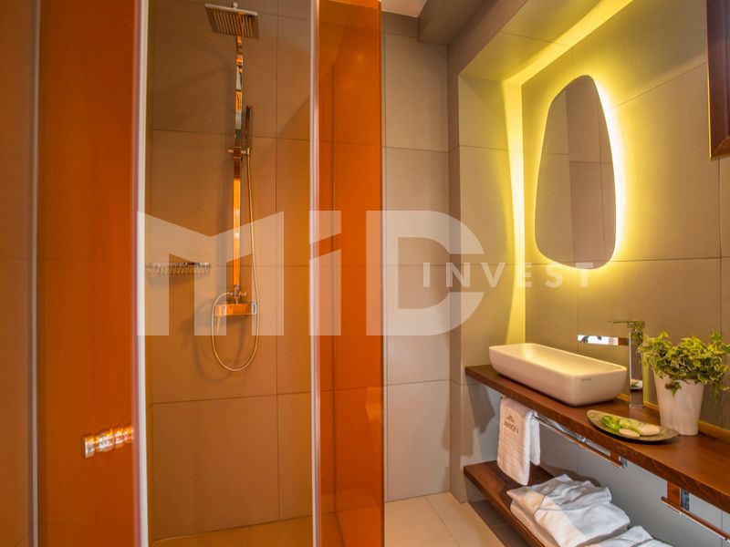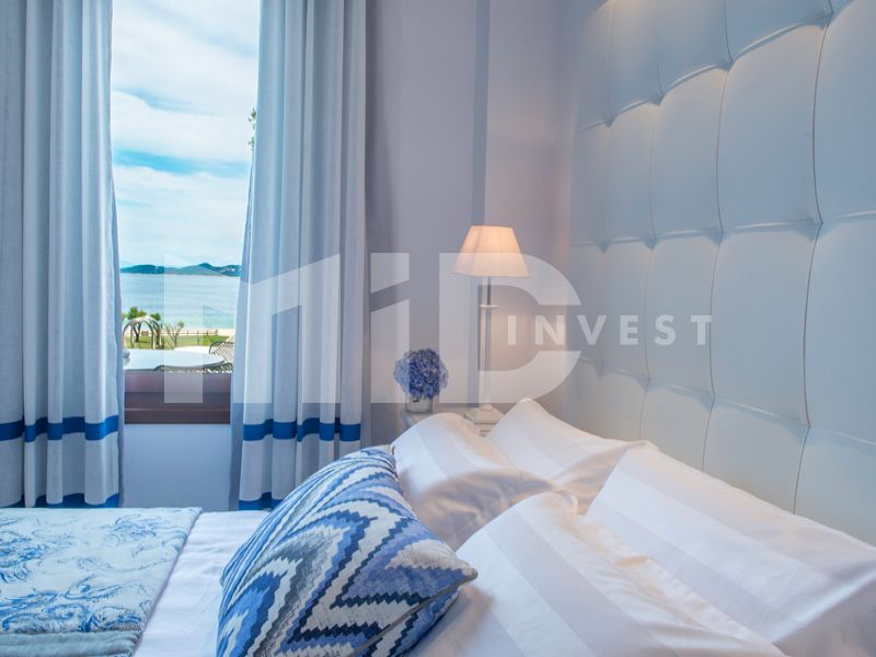 Luxurious appartment 60 sq. meters in a complex of 16 villas. This appartment is a stylish and contemporary beachfront escape which consists of one floor. It is designed in one level, on the ground floor, featuring living and open plan kitchen, one bedroom with king size bed and one with twin beds , one bathroom with shower. Private pool with a double, built in water, sun bed and furnished patio of almost 25 sq. m. with views to the gardens and the sea are also provided. Free welcome drink and bottle of wine and fruit upon arrival are only some of the services which are provided. The prices below are per week for the Low Season. For any further information, please contact us by phone or email of the company. http://www.midinvest.gr/en/chalkidiki-athos-apartment-2324/