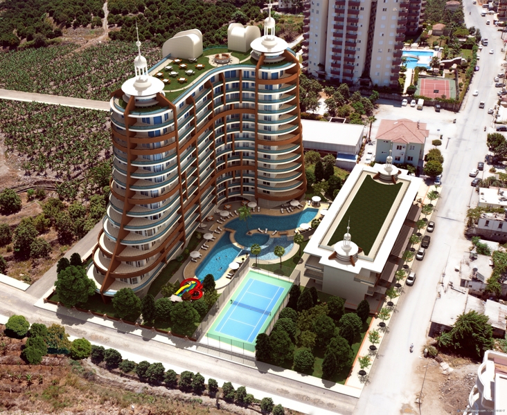 Инфраструктура комплекса: Большая территория, открытые и закрытые бассейны, фитнес-центр, хамам, сауна, детская площадка, мини-гольф, теннисный корт и т.д.. Специально-оборудованная, для принятия солнечных ванн, крыша также поразит Ваше воображение.