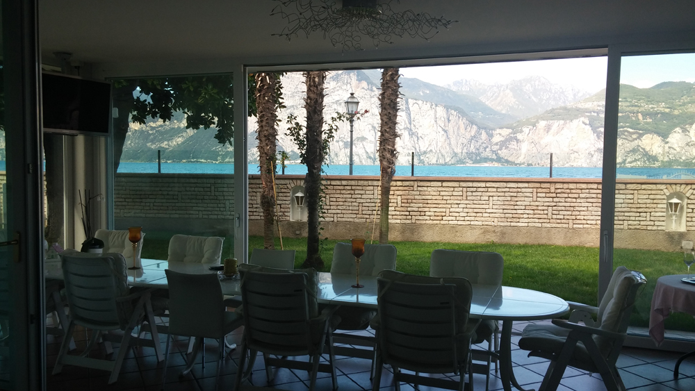 Вилла в Мальчезине, расположена прямо на берегу озера, от которого отделена тротуаром/велосипедной дорожкой. Площадь здания 250 кв.м, состоит из просторной дневной зоны, разделённой на столовую и гостиную с выходом на панорамную веранду и в сад, отдельной кухни, двух просторных спален, каждая со своей гардеробной и ванной комнатой, и санузла для гостей. Кроме этого на территории усадьбы расположен флигель с квартирой для гостей, состоящей из двух комнат и санузла с душевой кабиной и однокомнатной квартиры для прислуги с отдельным санузлом. В саду находится огромный бассейн (с новым автоматическим оборудованием, душем и раздевалкой), просторная элегантная беседка и место для барбекю. Дополняют собственность гараж, частный причал и буй для мотоскафа. Здание и участок находятся в отличном состоянии. Вилла продаётся полностью обставленной дорогой элегантной мебелью. Возможен торг.