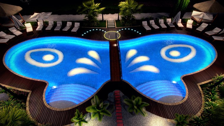* Внешние и внутрнние зоны отдыха с беседками и гамаками