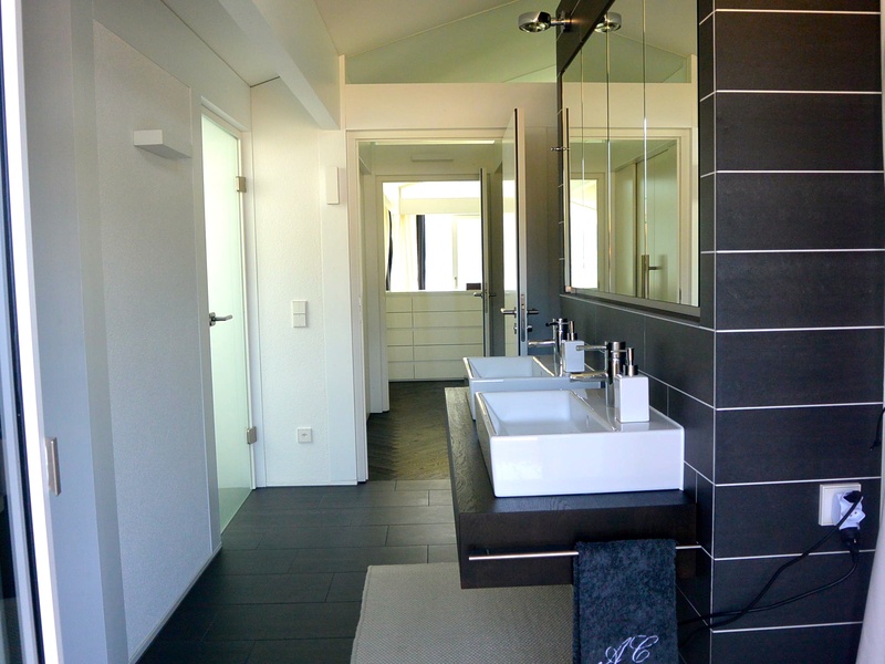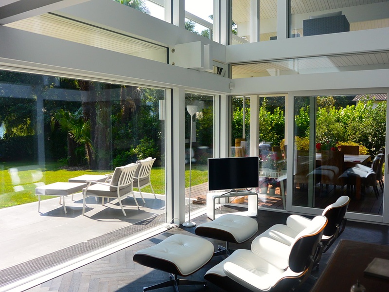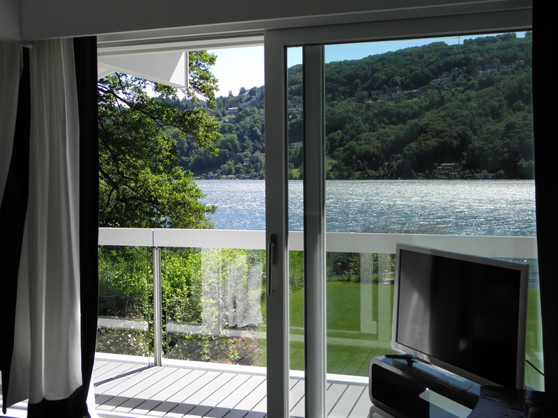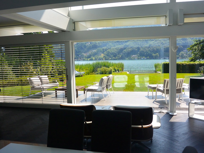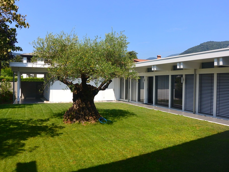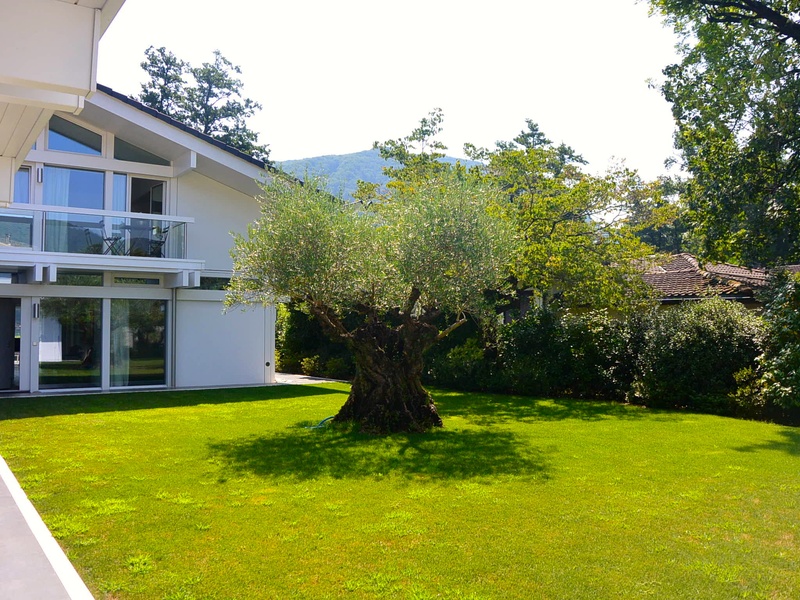 For sale modern villa near the lake in Magliaso, Ticino, Switzerland. Magliaso residential town situated about 15 minutes drive from Lugano and just a few minutes from Lugano Airport to Caslano or Golf Club. Malpensa Airport is less than an hour away. The villa is located in a quiet residential area on a large plot of 1900 m2 near the lake. Villa, modern building with exclusive wood and glass Huf Haus, is characterized by its transparency to the outside and inside of the side and has 330 square meters (10 rooms and 6 bathrooms). The owners have taken care of every detail, so aesthetically and functionally. The villa is on two floors and single-storey bungalow for guests or staff: between these two houses have a patio in the garden with olive trees more than 500 years. Premises are located as follows: Ground floor: • Large entrance hall • Living room with lounge, dining area, fireplace and access to the garden by the lake • Kitchen • Local study • Master bedroom with en-suite private bathroom • Bathroom with shower • Large utility room with fitted wardrobes . Ground floor • Wide gallery is open to the living room below and with access to the cozy covered terrace • bedroom with dressing room and bathroom • Master bedroom with large closet and a local spa with shower, sauna, steam bath. Bungalow: • Living room with kitchenette • 2 bedrooms, each with private bathroom • Technical room • Fitness room. The villa has 4 garage parking spaces and 6 outdoor parking. Large garden on the lake and has its own exclusive private dock. The price includes furniture. Price CHF 7'000'000