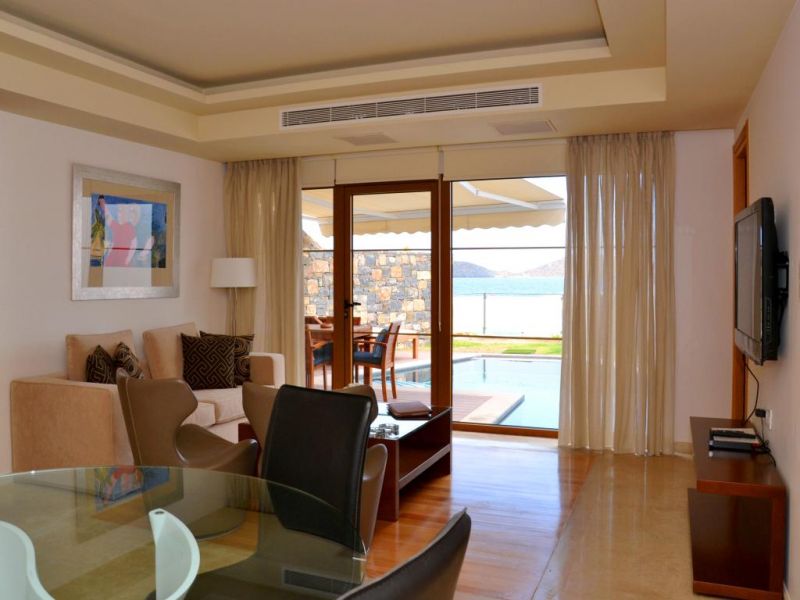 For sale 3-bedroom apartment in a residence 6-Stars Luxury Resort on the coast of the village of Elounda in Greece in the eastern part of the island of Crete, in the prefecture of Lasithi, 12 km from Agios Nikolaos. There are several options for real estate ranging from 2 bedrooms, 135 m2 of about € 1,500,000. Luxury Residence with private outdoor space, private pool and unobstructed views of the Aegean Sea, creating a sense of exclusivity. The apartment has 200 square meters, consists of a living room with a fireplace including an LCD TV with access to a private terrace, where there is a heated outdoor saltwater swimming pool, two bedrooms with luxurious marble bathrooms, Jacuzzi, shower, elegant luxurious finishes. The residence has: Steam cabins, a sauna, fitness equipment, W.C. guests. The apartment has: individual air conditioning / heating, uniform air-conditioning system, safety control panel, TV LCD screen satellite TV, music channel, DVD / CD-player, Desk, direct-dial telephone, high speed Internet access, mini-bar, dressing table with hairdryer, electronic safe, and Hypo-allergic feather pillows, Cribs, cots and high chairs. External construction of the project was completed in spring 2011.