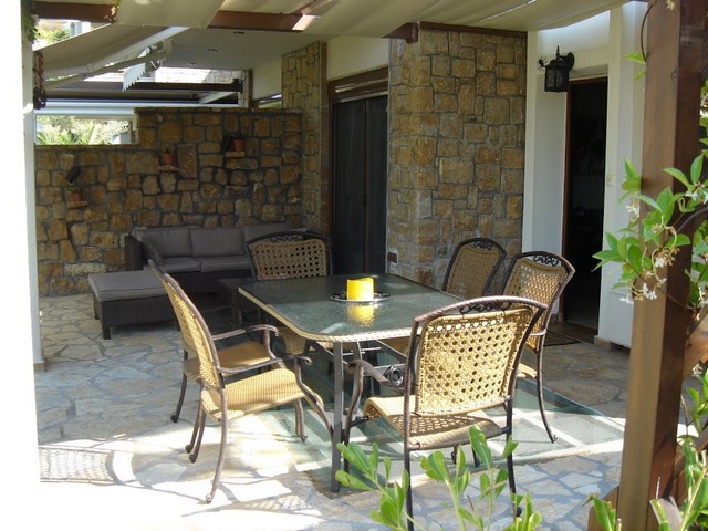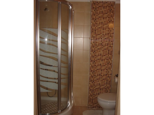 На цокольном этаже расположены 2 спальные комнаты, душевая с WC(телевизор кондиционер). На первом этаже(уровень земли) гостинная с кухней(кондиционер), душевай комната с WC, выход на большую крытую веранду с садовой мебелью. На втором этаже вверх по лестнице: 1 спальная комната(кондиционер).