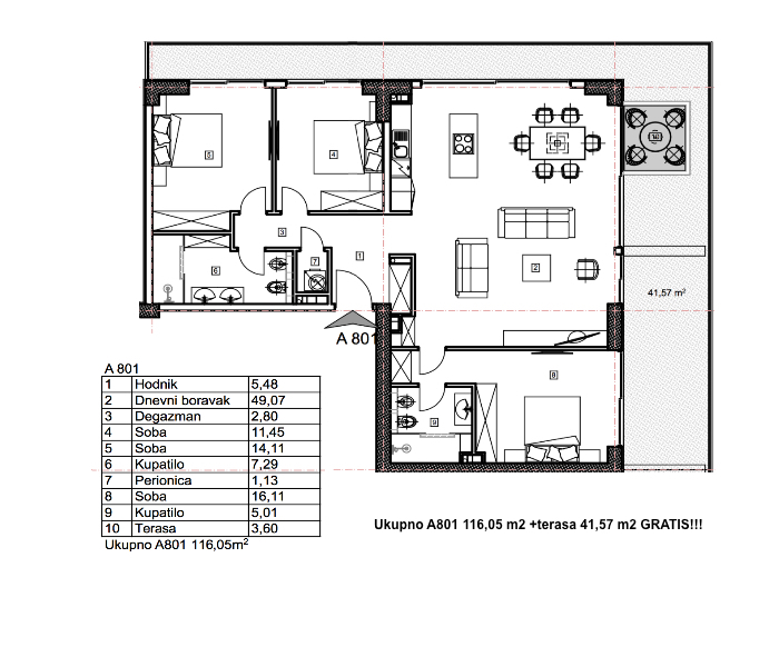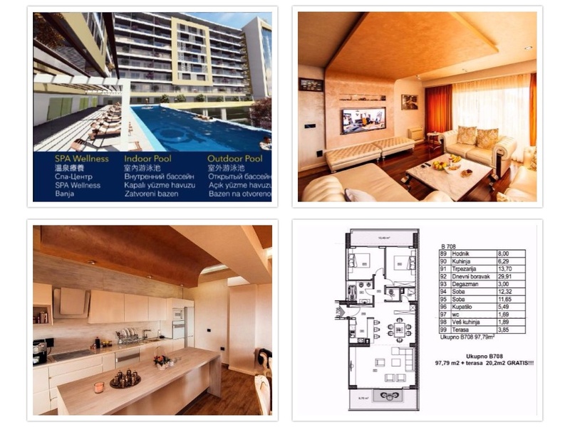 3-bedroom apartment number№ A801 in an exclusive multi-complex «Porto Budva» with a shopping center of 8000 sq.m and a SPA-center 3500 sq.m with a wide range of services, with indoor and outdoor pools!