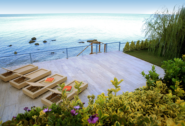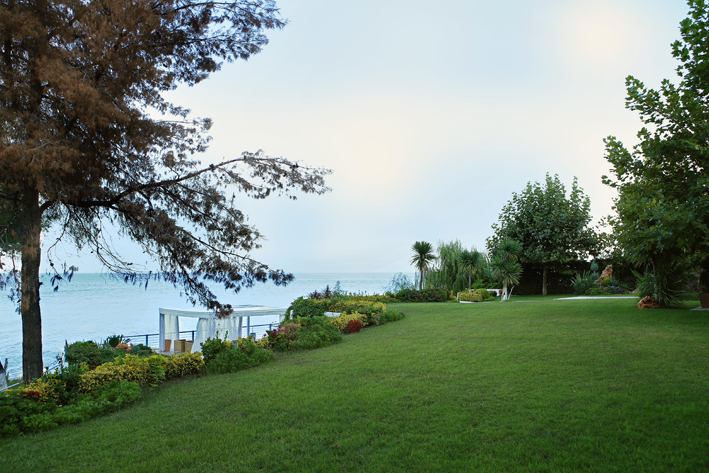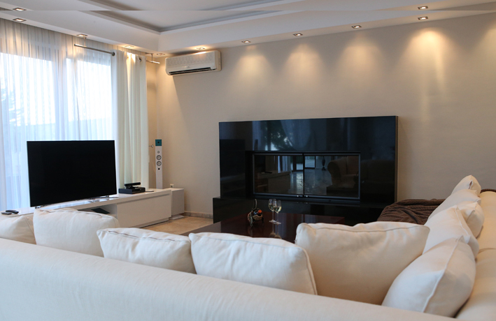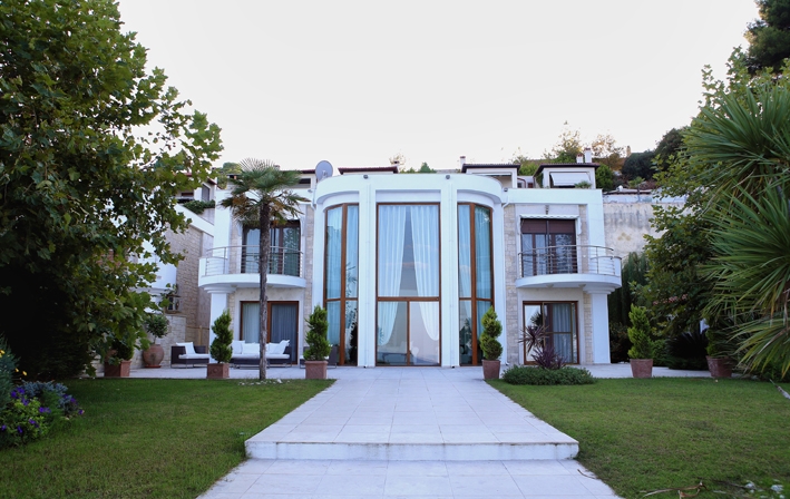 Three floored furnished villa in Chalkidiki is 80 km from the airport "Macedonia" and is 90 km from Thessaloniki city.It is a very calm place surrounded by pine trees and greenery. It is 10 m from the sea and has a big yard with alcoves and chaise-lounges. Prices: May:800 June:1300 July:1.600 August:1.600 September:1300 October:800