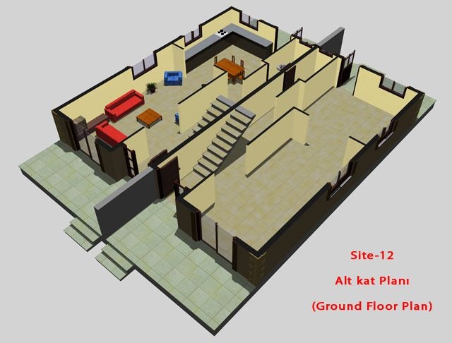 Within the project, there are 30 semi-detached duplex villas and 8 duplex row houses. Semi-detached duplex villas are 145m² big .The villas were designed in a comfortable and useful way. There are three bedrooms, big balconies upstairs and WC& shower downstairs. The villas have got 6 meters long front garden and 8-9 meters long back yard.