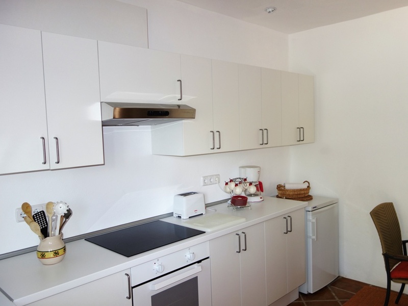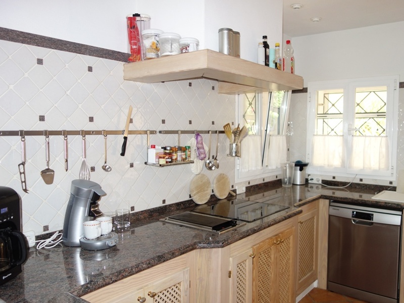 Barbecue (summer kitchen) is equipped with fridge, sink and huge granite table.
