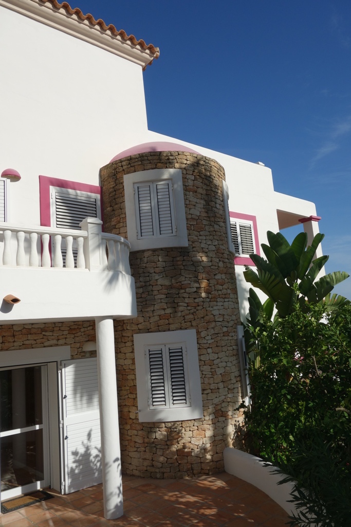The house, south-oriented, is located on the top of a hill near Cala Llenya in San Carlos area, offering spectacular views to the valley below, the forest, the sea and Formentera island.