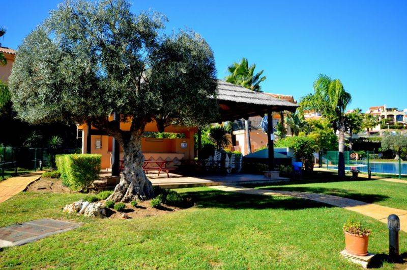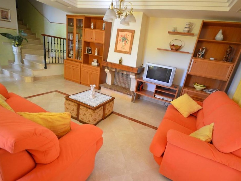 This nice corner townhouse is located in a private community with 2 swimming pools in Riviera del Sol. The house has 196 m2 of a private garden and 15 m2 of parking. On the ground floor there are a fully equipped kitchen, a toilet, and a living room with a great fireplace accessing the terrace and a private garden with east orientation. On the first floor there are 3 large bedrooms with fitted wardrobes, 2 bathrooms, a big terrace with partial sea views. Next to the urbanization there are a large park for children and a green zone. The communal areas include 2 good-size swimming pools and a chirinquito for making parties and barbecue. That´s a perfect holiday or residence home.