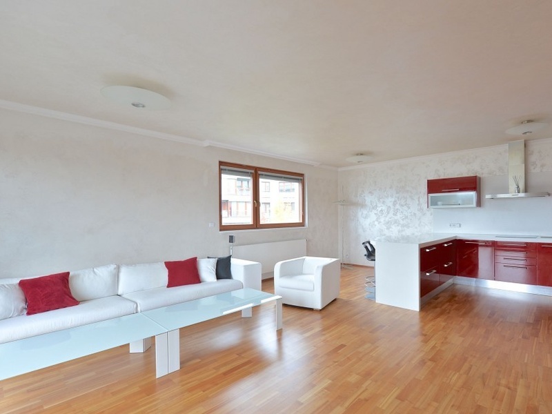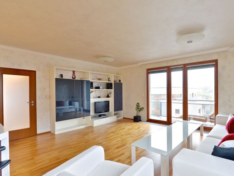 Продается современно меблированная квартира с террасой и лоджией, откуда открываются виды на зеленые насаждения. Квартира находится на 2-м этаже закрытого типа резиденции с парковкой и детской площадкой, на возвышенности в Праге 5 – Радлице (Praha 5 – Radlice).