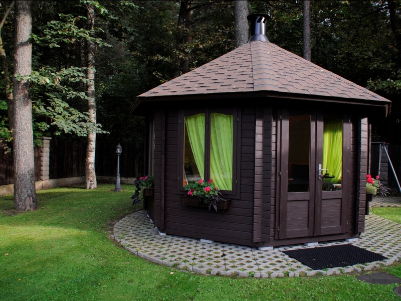 On back part of a site the bath of 230 sq.m and a round besedochny lodge with a brazier on the middle is located (10-12m2).