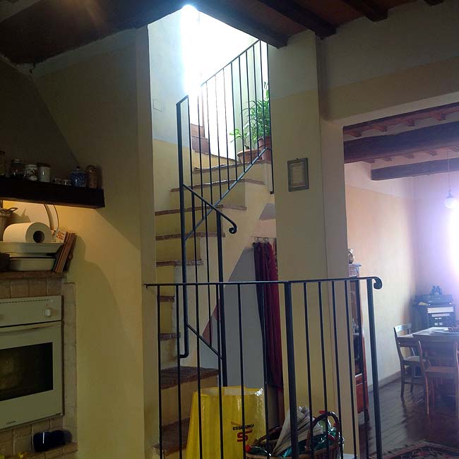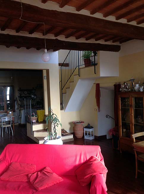 During the Middle Ages the building was used as a hospital and was transformed and renovated by the actual owner. It is located on the first floor of an antique two-storey building. It comprises 1 broad living room equipped with a fireplace, 1 kitchen, 3 bedrooms, 2 bathroom of which one serves the master bedroom , 1 study room and 1 utility room used as launderette. From the living room stairs you can reach the terrace. From the terrace you can enjoy a panoramic view over both the centre of the town and the valley, From Cortona to the Trasimeno lake. If the day is particularly clear you could even see the Majella mountains.