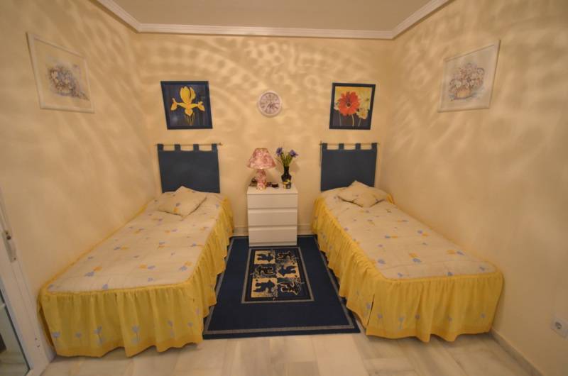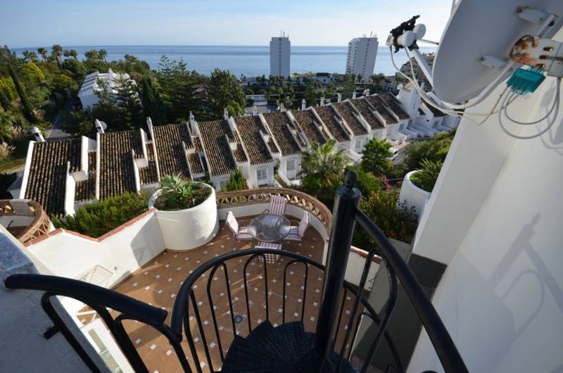 A beautiful townhouse with a fantastic sea views in one of the best places of Benalmadena Costa! First floor has a fully equipped kitchen, guest toilet room, spacious salon with a fireplace and an access to the terrace with a barbeque place and front sea views! The ground floor has small game room with a patio, 3 bedrooms and 2 bathrooms , a master bedroom with en suite bathroom and an access to the garden! From the terrace of the first floor there are stairs to the upper floor where you can see a beautiful sea views. The house has air conditioning.