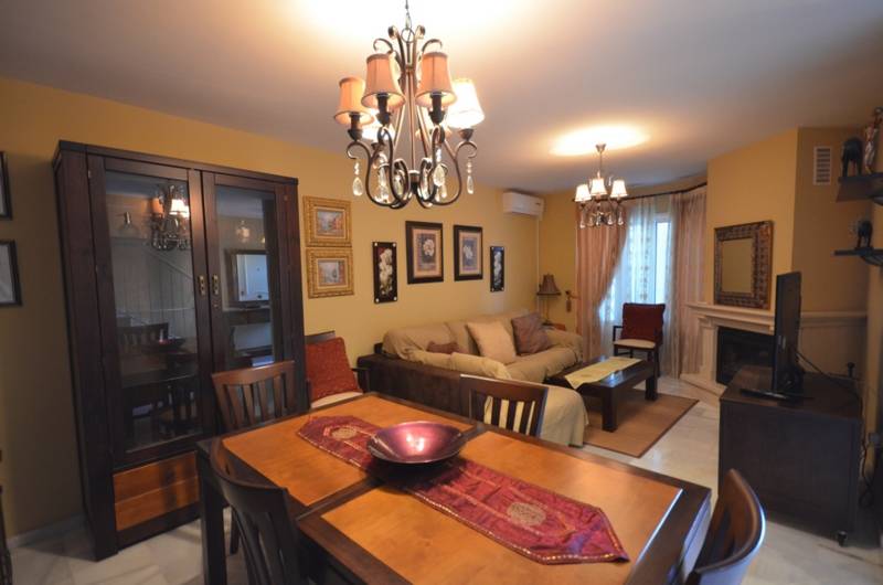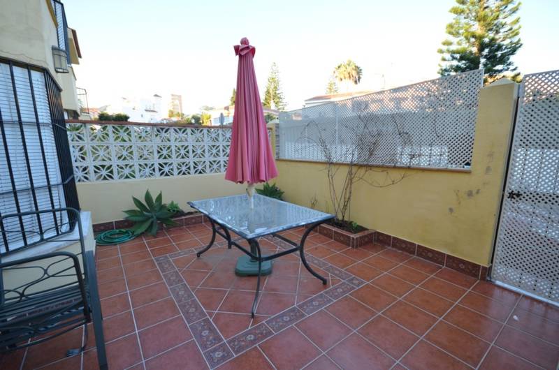 This is an amazing townhouse in just a 7-minute walk from the beach and just a 10-minute walk to the famous Puerto Marina. It has 3 big-sized bedrooms, 2 bathrooms, a grand fully equipped kitchen and several terraces. There are fitted wardrobes, a fireplace, an A/C and a garden with a swimming pool that belongs to the community. There is also a parking space and the storage room included into the price.