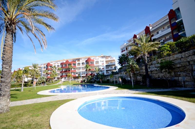 This apartment is located in Riviera del Sol and has amazing sea views. There are 2 bedrooms, 2 bathrooms one bedroom has an ensuit bathroom. The main advantage of this apartment is the big terrace overviewing the sea and a golf course. Ideal for the investment, as it is popular with tenants in summer because of its´closeness to the beach. In winter that would be popular with golf players. The apartment has a parking place and the urbanization has communal gardens, a heated pool and an amazing restaurant on site.