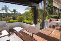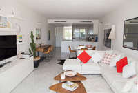 Beautiful 2 bedroom apartment in Golden Mile. Recently renovated, good quality, modern and fresh style. Ample and very luminous livingroom with dining area, open design kitchen with views over the livingroom to the terraza and garden. From the large terrace you can enjoy lovely view to the pool and exuberant garden. Orientation to south. One en-suite bedroom with access to the terrace and other bedroom with a balcony, bathroom in the corridor. Situated in one of the most prestigious areas of Marbella very close to the beach. Parking and storage included. Furniture negotiable.