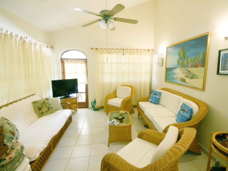 For sale the villa with 2 bedrooms, and a beautiful tropical garden with fruit trees. The villa is situated in a gated community - IFA, located in the heart of the tourist zone Bavaro in the Dominican Republic. The beach is located at 5-7 minute walking distance.