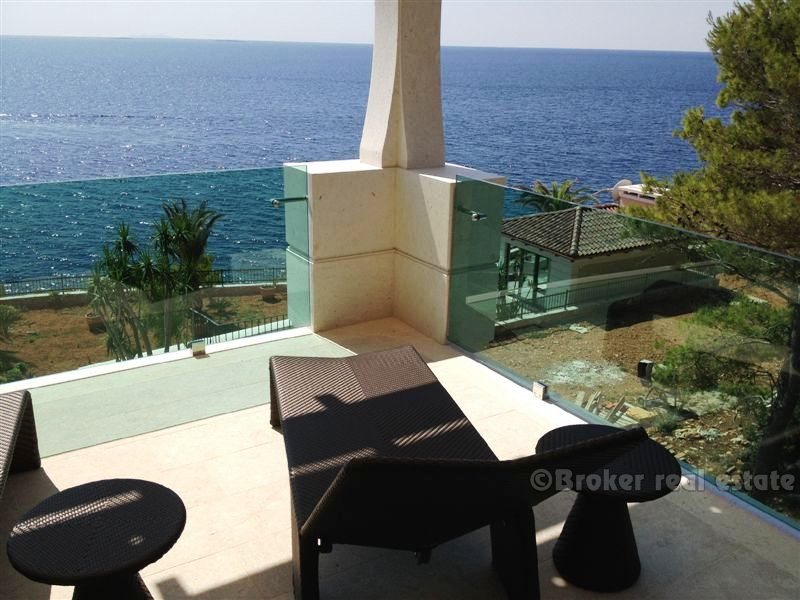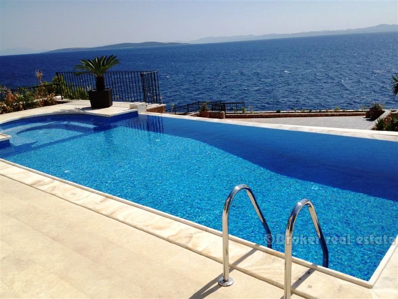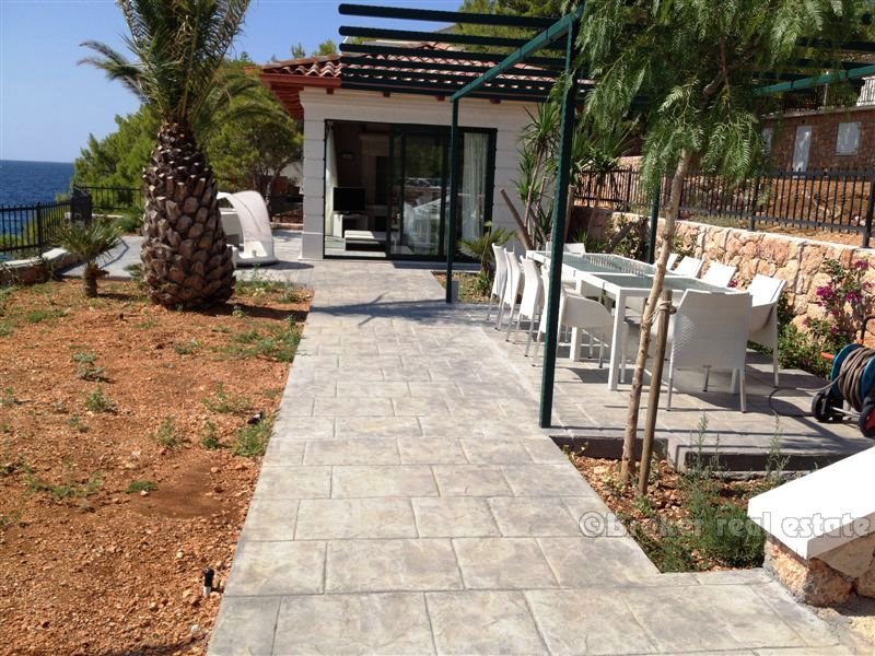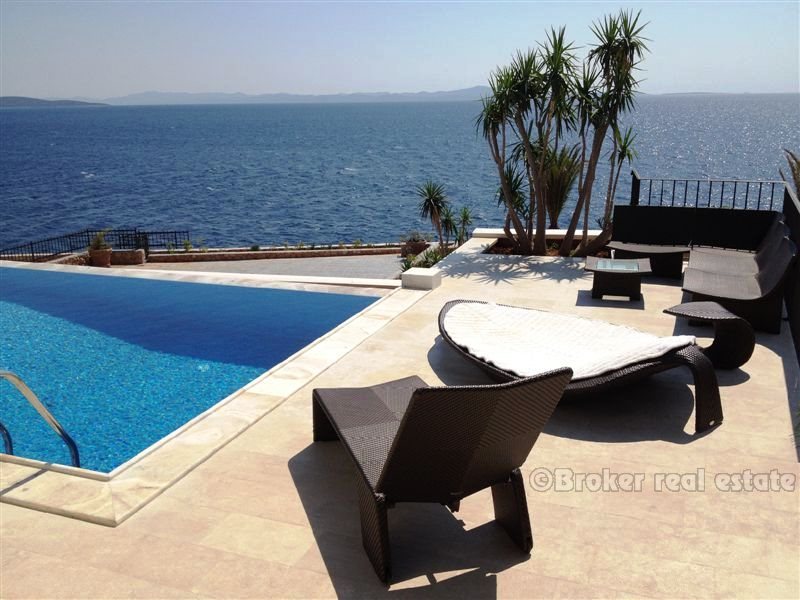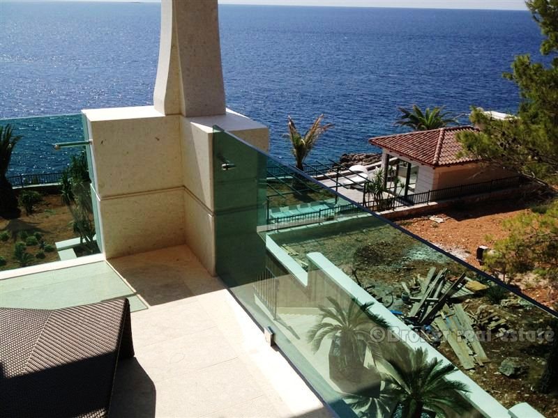 Villa for sale in the island of Hvar in the Adriatic Sea, in the southern part of Croatia, near the Dalmatian coast, and it is located on the same city. The villa consists of 5 bedrooms, 5 bathrooms, 3 toilets, living room, dining room, kitchen with entrance hall, in the basement garage with 6 parking spaces, dry storage, a Turkish bath, Finnish sauna, showers with special effects, as well as space for massage tables , about 215m2 pool, waterfall around 8 m. The villa has a basement about 50m2. The whole villa in stone, air conditioning, heating, ventilation, plumbing, wiring, all the highest quality standards. The kitchen is fully equipped with Miele technology. Note: As part of landscape will be additional parking with automatic gate for 6 cars, and complete landscaping with automatic irrigation and outdoor lighting around 700m2. The villa has full access to the sea and the possibility of mooring boats. The video surveillance system, alarm. The villa will be fully completed, will be planted gardens with automatic irrigation. Upon its completion, it will be one of the most beautiful buildings in this part of the Adriatic.
