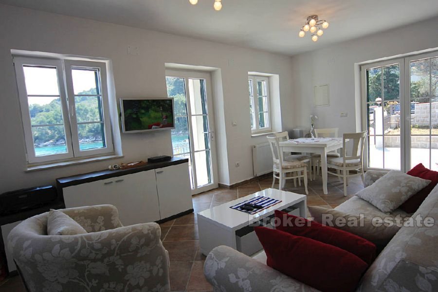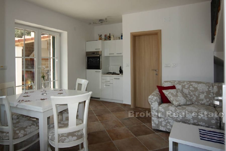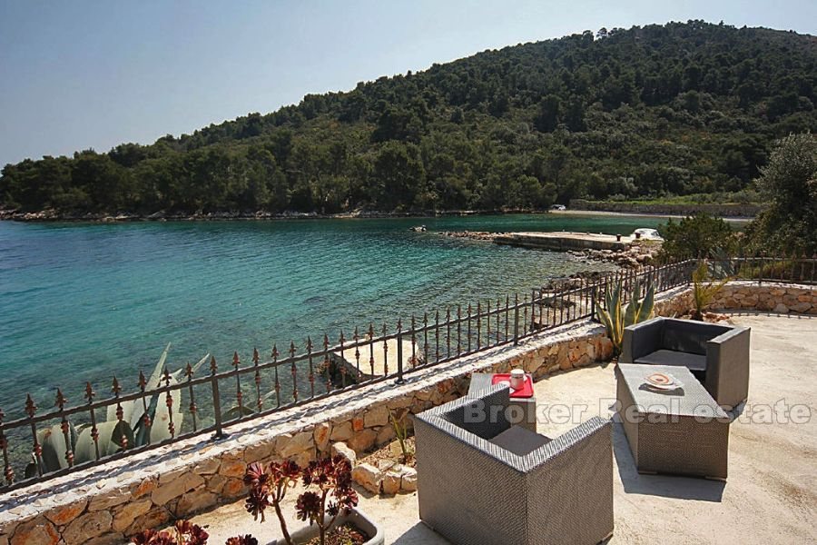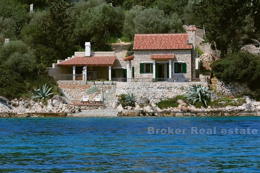 Villa for sale in the island of Hvar in the Adriatic Sea, in the southern part of Croatia, near the Dalmatian coast, and it is located on the same city. Beautiful stone house surrounded by vineyards and olive groves, is located 15 minutes from the island of Hvar the main ferry port. The villa is a mixture of luxury and tradition, and is located just 10 meters from the perfectly clear sea with a private beach and boat dock. The living area of ​​the villa is 67 sq.m, the plot is 260 square meters. m .. It has a living room, kitchen, dining room and two bedrooms with en suite bathrooms. The villa includes a stone barbecue and gazebo for twenty people. The view from the sun terrace on the island of Brac. Spectacular sea views can be enjoyed from the open verandah, al-fresco dining or a gazebo. The villa is completely independent energy (solar panels, water tank) and is fully air-conditioned.