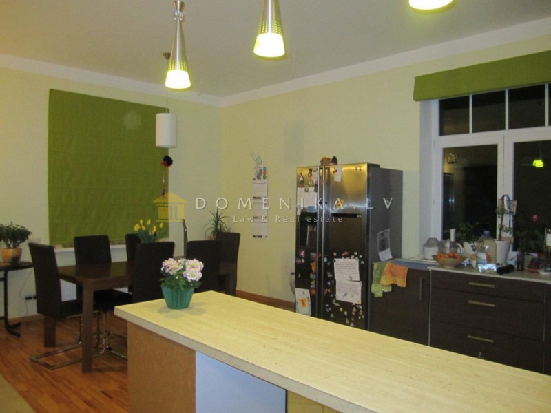 House for rent for the summer season. The house has a living room with a fireplace, which is combined with kitchen. 3 bedrooms, 2 bathrooms, large terrace with river views. The house has a alarm system. Underfloor heating, TV, washing machine, home appliances, gas heating. To the sea 10 minutes walk, near the river. In the yard there are other houses.