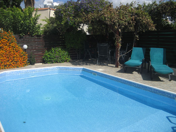 Личный бассейн с римскими ступенями окружен патио с зелеными насаждениями и выглядит очень привлекательно и ухоженно. Здесь же расположились летняя кухня и помещение для хранения.