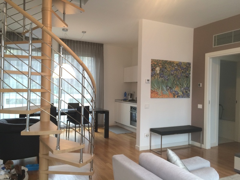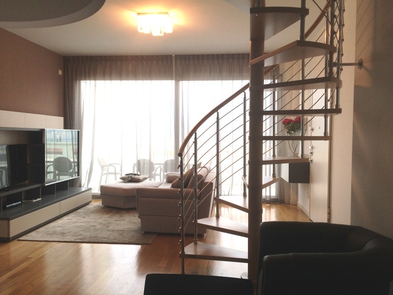Апартаменты располагаются на четвертом панорамном этаже , имеют в собственности терассу над квартирой равной площади всего апартамента., а также две лоджии. На терассу можно подняться как прямо из квартиры по лестнице, так и по внешней лестнице.
