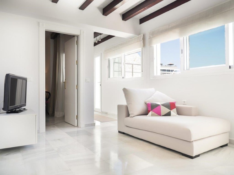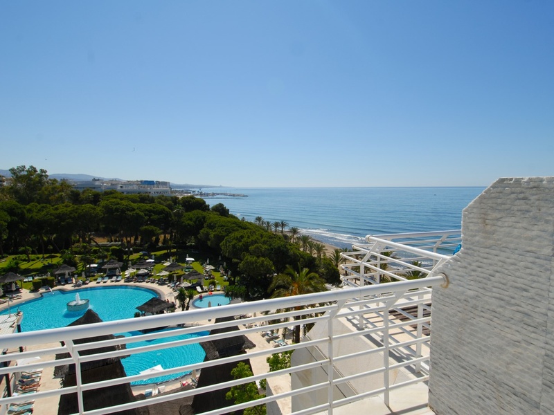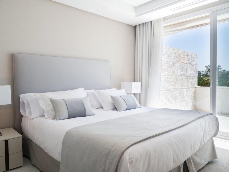 Stunning luxury penthouse, recently decorated and furnished by a professional designer. For sale and rent on a long or short term. Minimum rental period of 15 days. Located in a prestigious residential complex, close to the hotel Gran Melia Don Pepe in Marbella, on the beach. Garage space and storage. Orientation west, excellent views of the sea and mountains. On the top floor there is a small private pool with magnificent panoramic views. The complex has a gym, a sauna, and a communal swimming pool. Video surveillance 24 hours and guest parking.