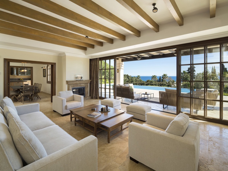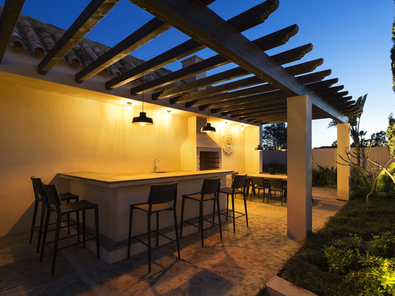 New villa, well located, 500 meters from the distinguished restaurants, shops, and 900 meters from the beach. This unique villa comprises: entrance from the patio, living room with fireplace, dining room, office and library. Besides 5 bedrooms and 5 bathrooms. Playroom, cinema, wine shelves. Massage, spa with Turkish bath, gym. Garage for 4 cars. Spacious terraces, elevator (4 floors). Heated swimming pool in infinity style. Gazebo by the pool with BBQ and Jacuzzi. Fantastically beautiful garden. View of sea and mountains. Orientation south.