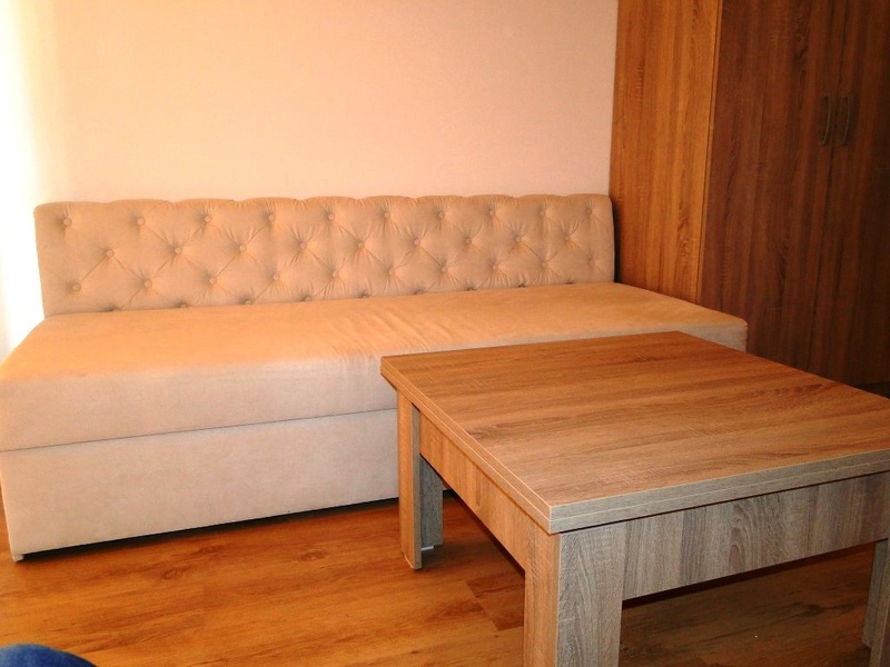 -      два раскладных дивана, гардеробный шкаф с антресолью, журнальный столик; кондиционер („зима / лето”);
