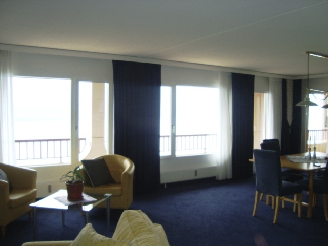 Price change! Beautiful apartment of 4.5 rooms, 280 m2, located in Montreux / Territet, with beautiful breathtaking view on Lake Geneva and the mountains. Distribution: The apartment is distributed as follows: – An entrance hall – A large living room and access to balconies – Fully equipped kitchen may be entered from the enterance and living room, also has a window to the balkony for easy service – 3 bedrooms – 2 bathrooms (shower-toilet-sink) – guest WC – A room for loundry and ironing The apartment has a big balcony. Parking spaces: 2 boxes garages are available.