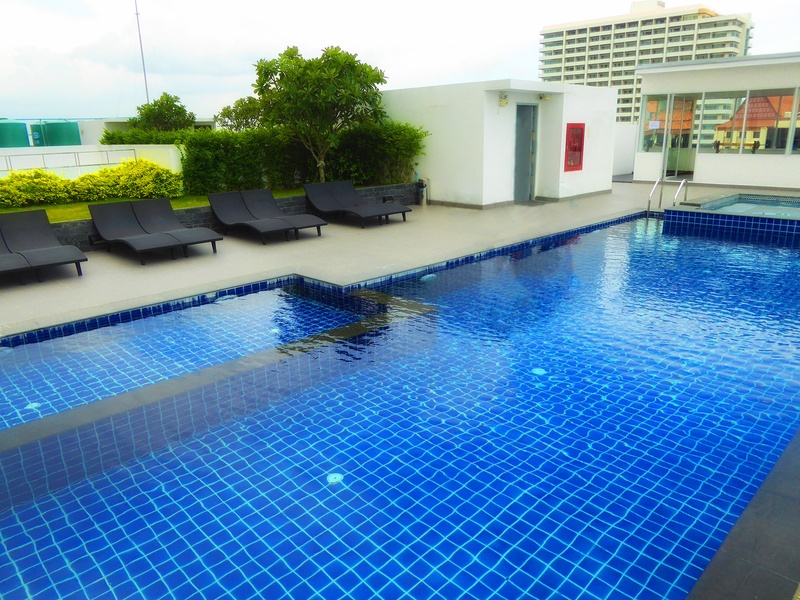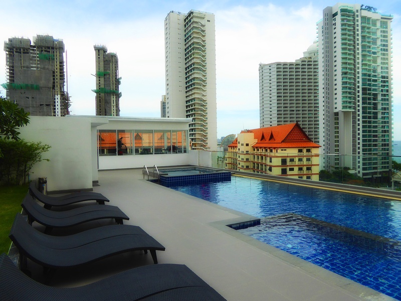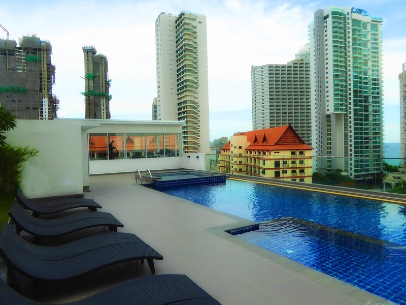 Feature of "Serenity Wongamat" is a large outdoor pool with Jacuzzi and fitness room, located on the roof.