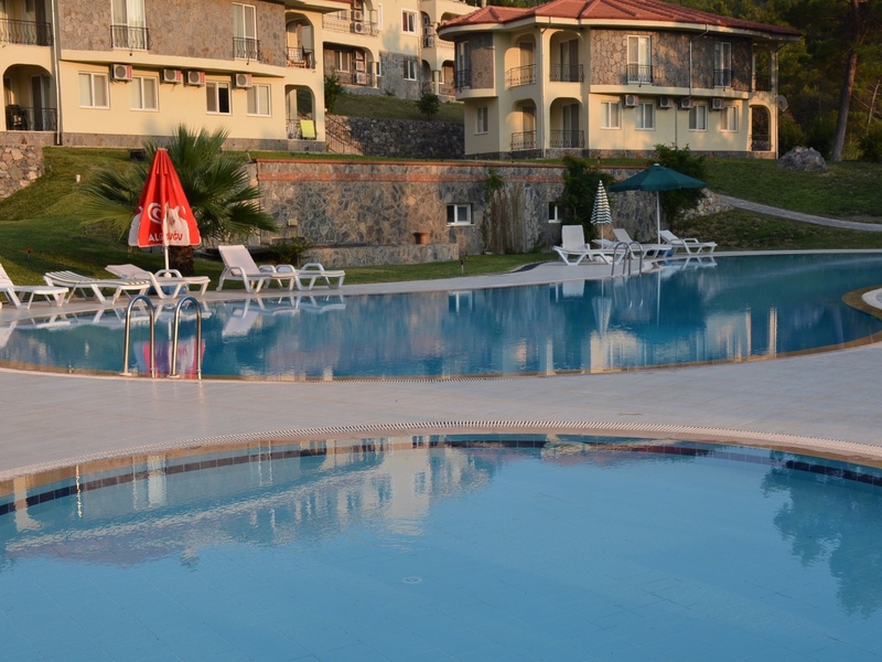 Dalaman, Akkaya, luxury apartment 2 + 1 for sale, fully furnished, located in a beautiful residential complex with pool, surrounded by the nature. The apartment, recently built, is finished with high quality and elegant materials.