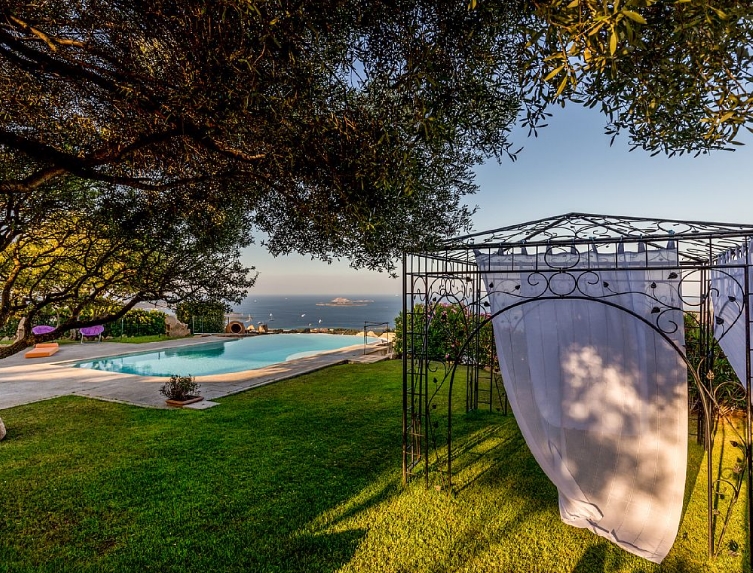 This wonderful estate of Leonardo, located on a hilltop that dominates the Costa Smeralda, is composed of three parts, the Sunset Villa, Villa Alba and pristroyka, okruzhena a beautiful park of over one hectare.