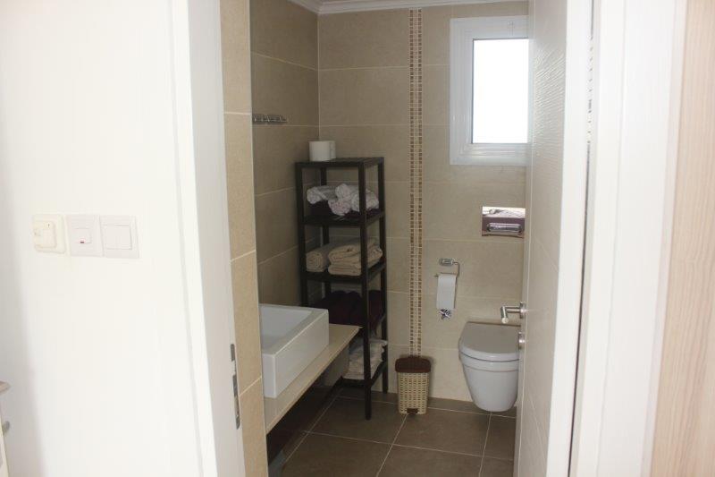 В ванной комнате большая и удобная душевая кабина.Кухня имеет открытую планировку и оборудована всем необходимым. В гостиной  и столовой есть удобные, большие диваны.  Так же имеется еще одна ванная комната с душевой кабиной. Все комнаты оснащены кондиционерами. Открытая терраса на крыше для отдыха на свежем воздухе. Терраса оснащена встроенным барбекю, что позволяет насладиться едой на свежем воздухе с великолепным видом на закат и море. В апартаментах есть спутниковое телевидение и  WiFi. Установленная система отопления дает возможность проживать в данной квартире круглый год.