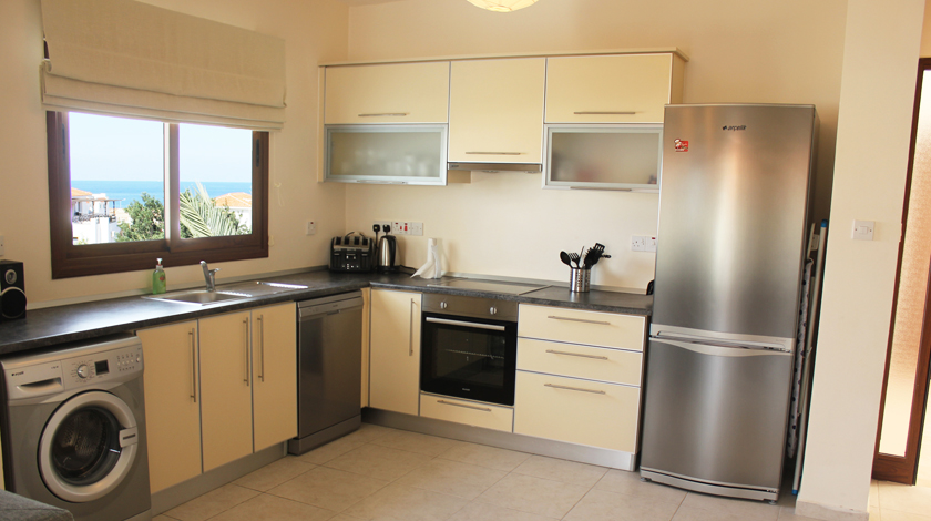 В ванной комнате большая и удобная душевая кабина. Кухня имеет открытую планировку и оборудована всем необходимым. В гостиной и столовой есть удобные, большие диваны. Так же имеется еще одна ванная комната с душевой кабиной. Все комнаты оснащены кондиционерами. Открытая терраса на крыше для отдыха на свежем воздухе. Терраса оснащена встроенным барбекю, что позволяет насладиться едой на свежем воздухе с великолепным видом на закат и море. В апартаментах есть спутниковое телевидение и WiFi. Установленная система отопления дает возможность проживать в данной квартире круглый год.