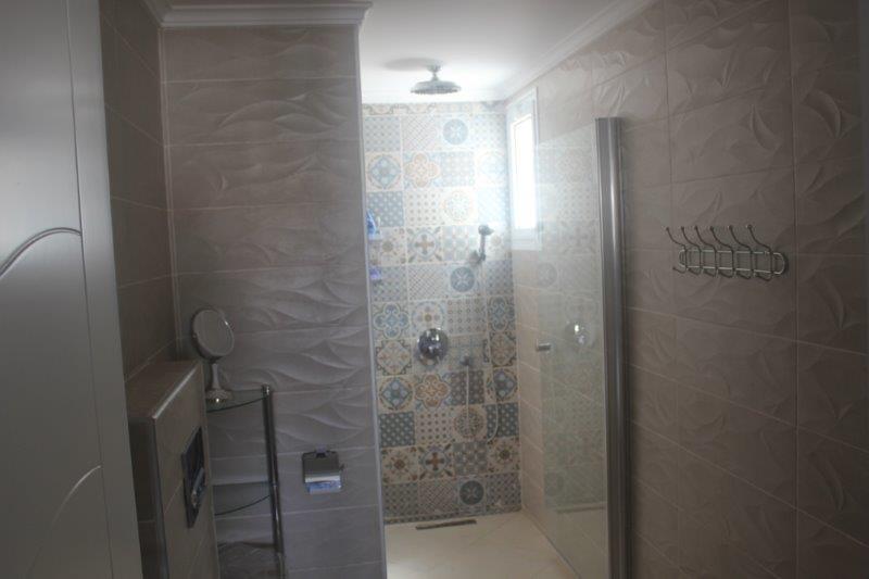 В ванной комнате большая и удобная душевая кабина.Кухня имеет открытую планировку и оборудована всем необходимым. В гостиной  и столовой есть удобные, большие диваны.  Так же имеется еще одна ванная комната с душевой кабиной. Все комнаты оснащены кондиционерами. Открытая терраса для отдыха на свежем воздухе. Терраса оснащена встроенным барбекю, что позволяет насладиться едой на свежем воздухе с великолепным видом на закат и море. В апартаментах есть спутниковое телевидение и  WiFi. Установленная система отопления дает возможность проживать в данной квартире круглый год.Блок “А“ расположен в центре комплекса.