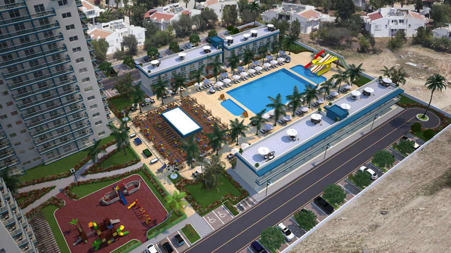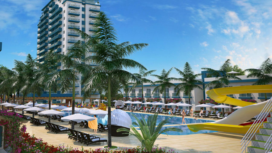 Инфраструктура комплекса включает в себя бассейн с горками, детские площадки, кафе, СПА, аптека, пункт медицинского обслуживания, банк, химчистка, сувенирная лавка и многое другое. Это будет еще одно привлекательное место на побережье, куда судовольствием приедут люди!